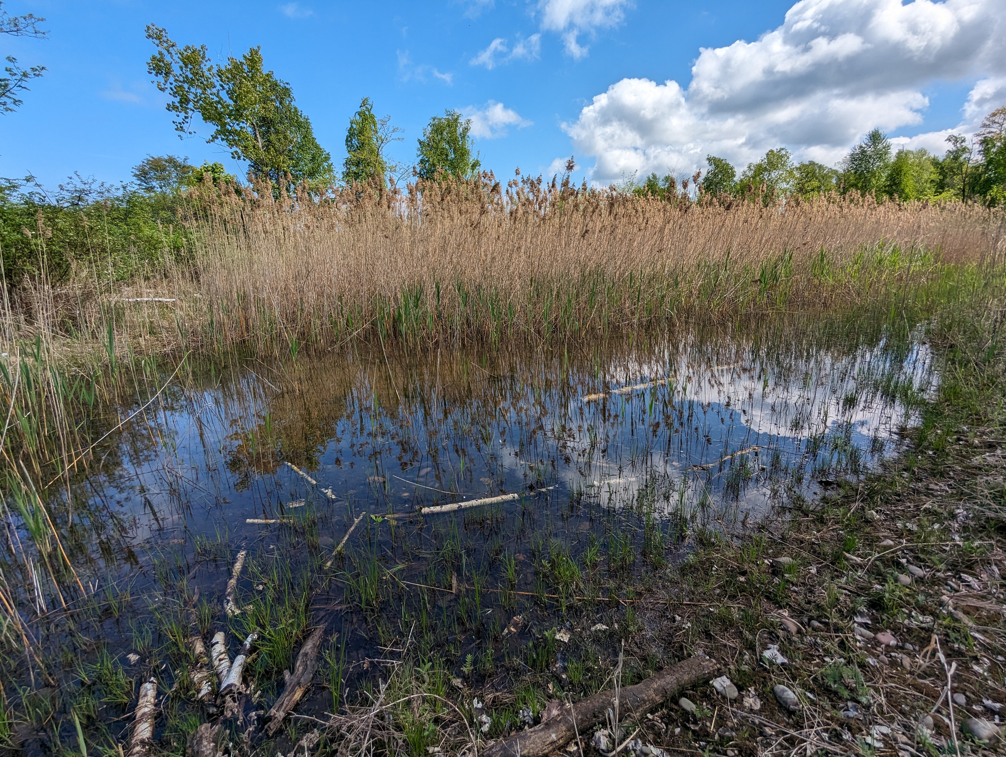re photos the vernal pond is near it's highest seasonal level ( it receives water from lake and bay through the gravel and so goes up and down with those levels). If you check it out watch for TICKS!